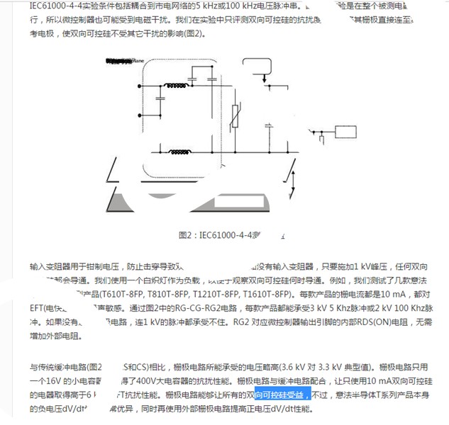 7. 选用好的门极触发电路,避开3+象限工况,可以最大限度提高双向可控硅的dIT/dt 承受能力。